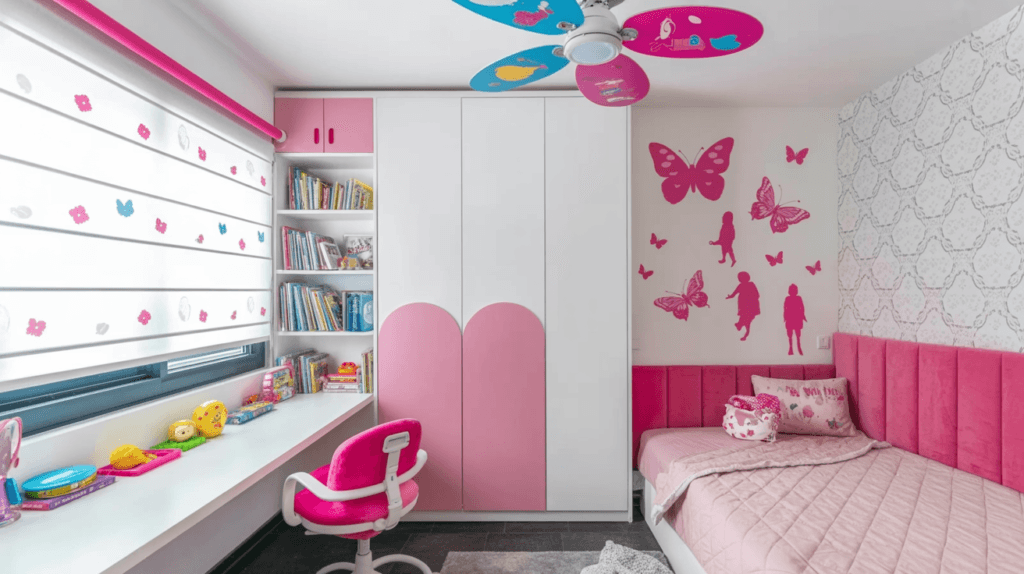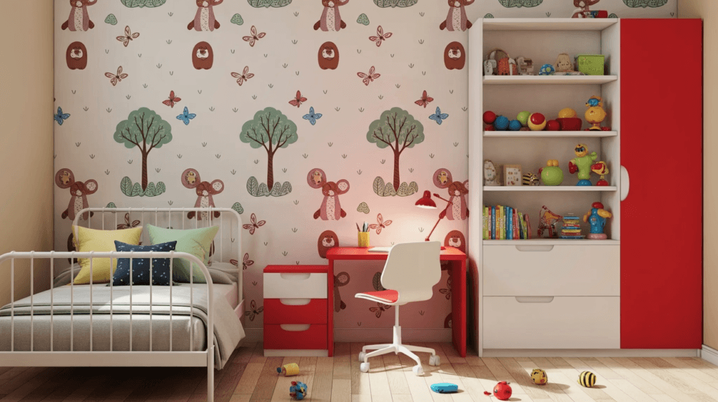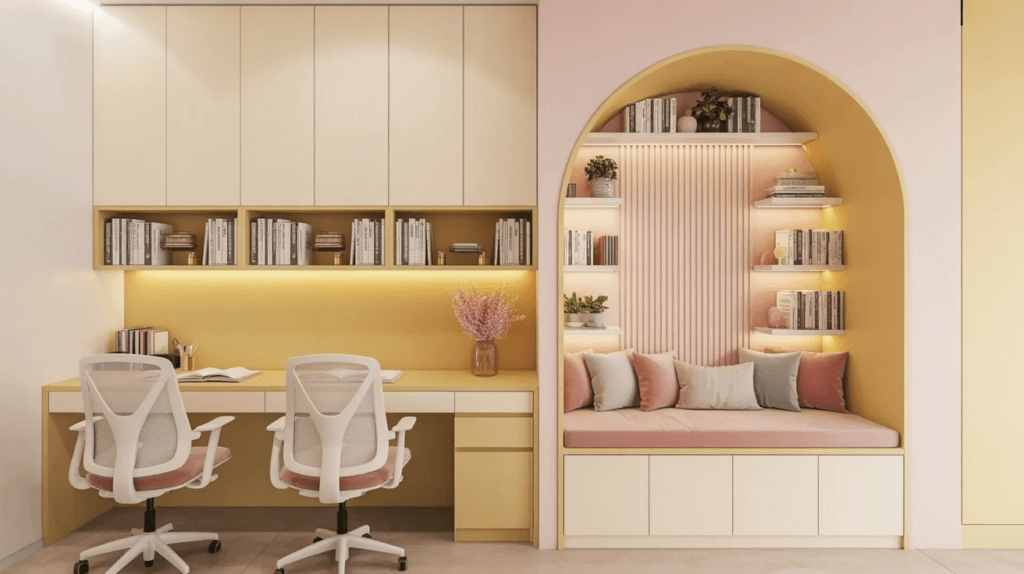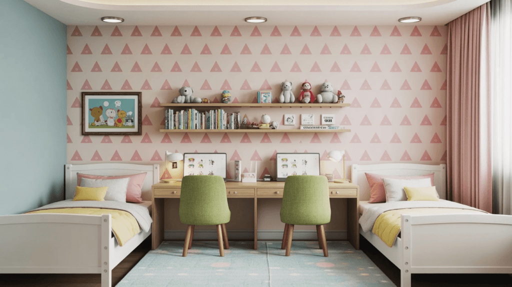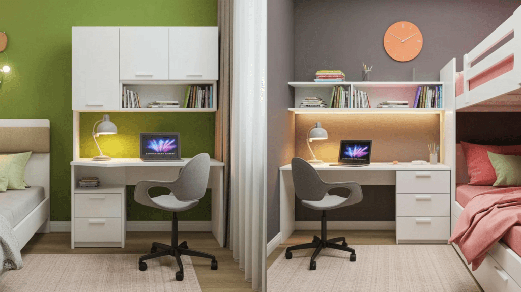 A thoughtfully coloured kids’ study table design can subtly improve attention without overwhelming the room.