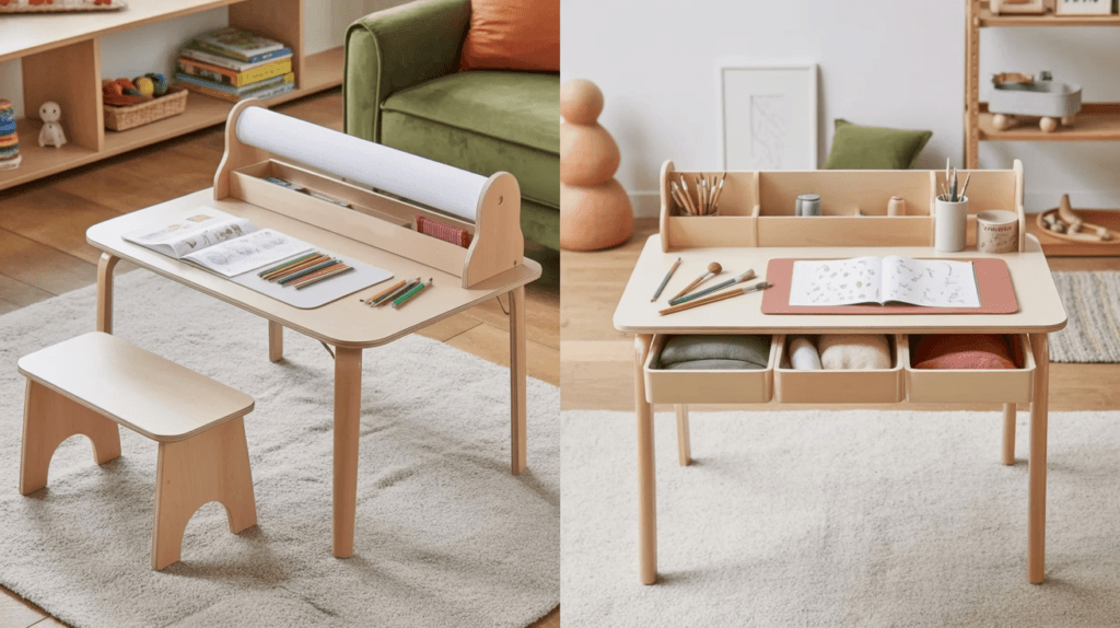 Designed for little hands, these tables help children stay organised and focused by keeping essentials within reach.