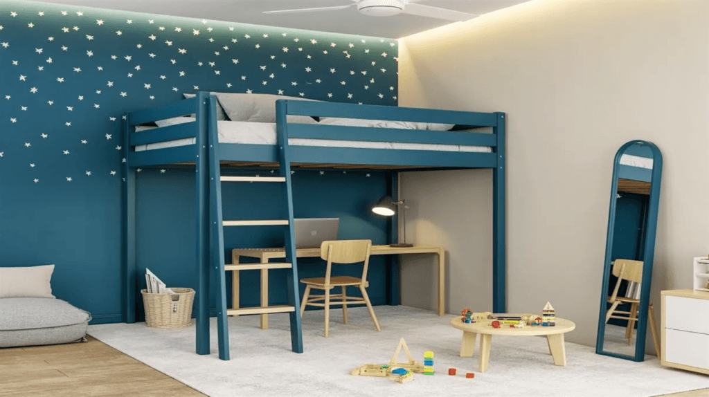 This design separates the study and sleeping areas, helping children mentally switch into study mode.