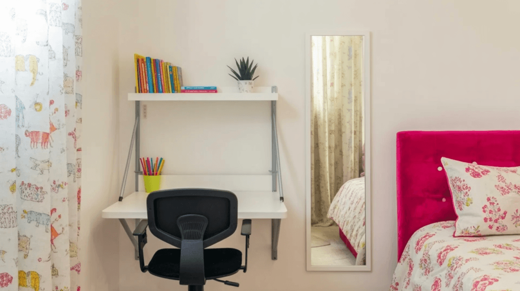 Designed for compact bedrooms, foldable study tables can be closed when not in use, keeping the room clutter-free.