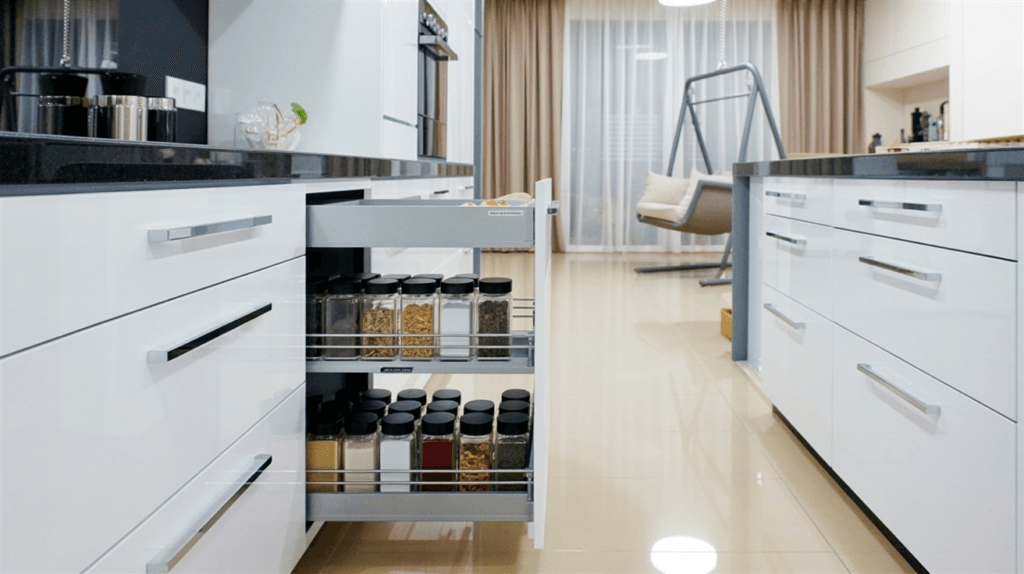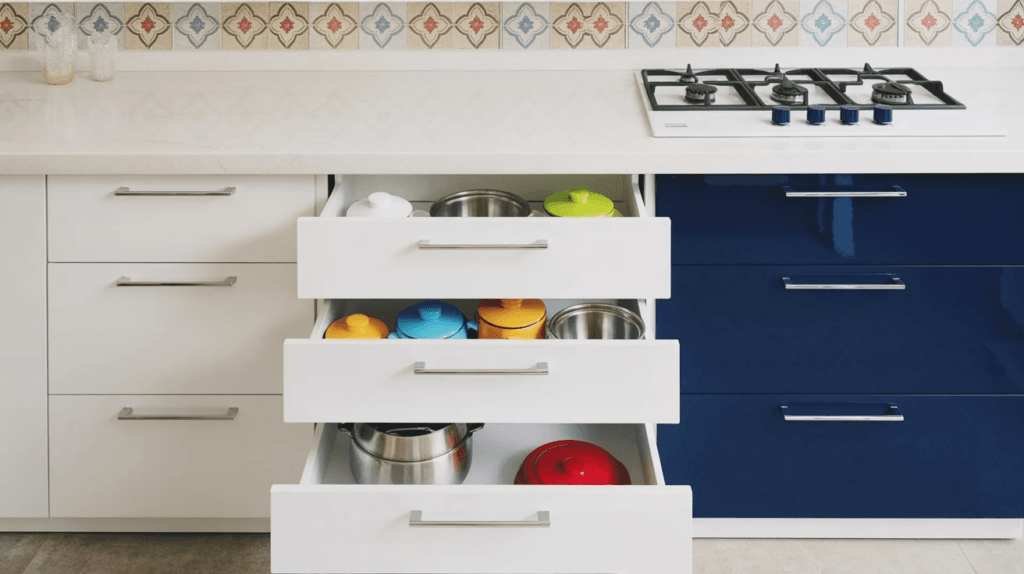 - For a premium, silent kitchen: Soft-close or retracting drawers.
