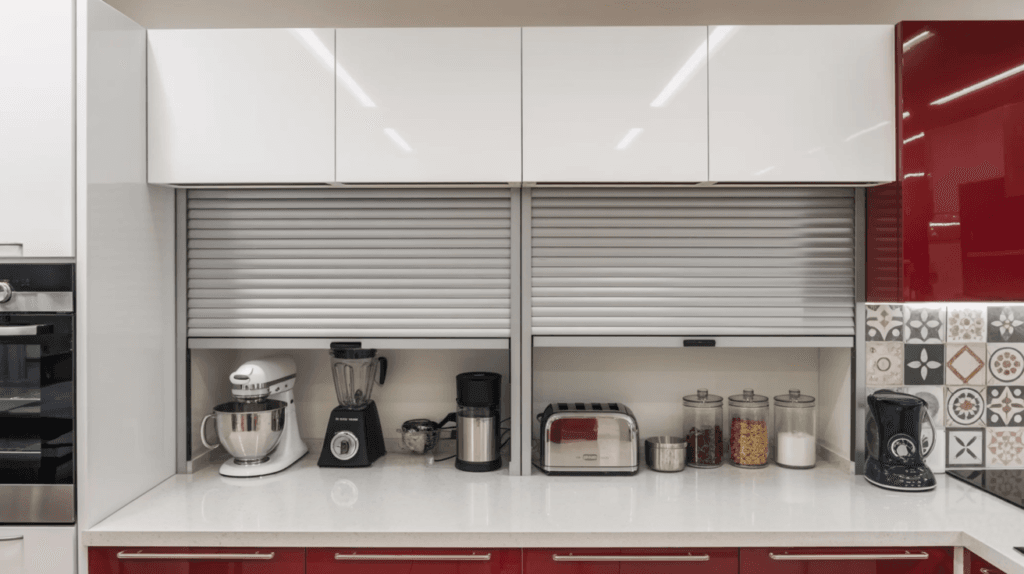 Real-life scenario: Imagine storing your blender, toaster, or coffee machine in one neat space. A roller shutter keeps them hidden when not in use, leaving your counter clean.